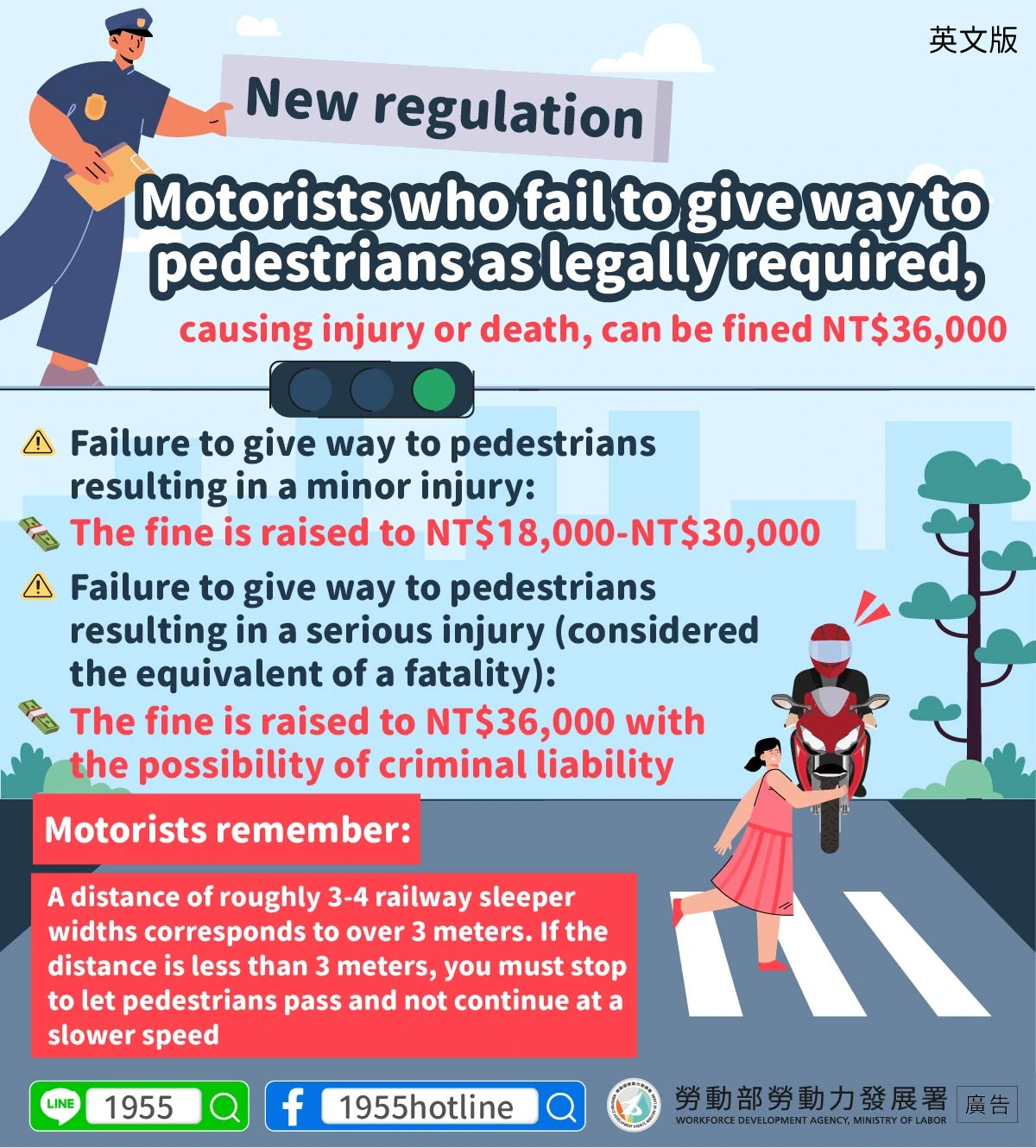 1141201 新法上路—小心未依規定禮讓行人並致人死傷 最高可罰新臺幣36,000元