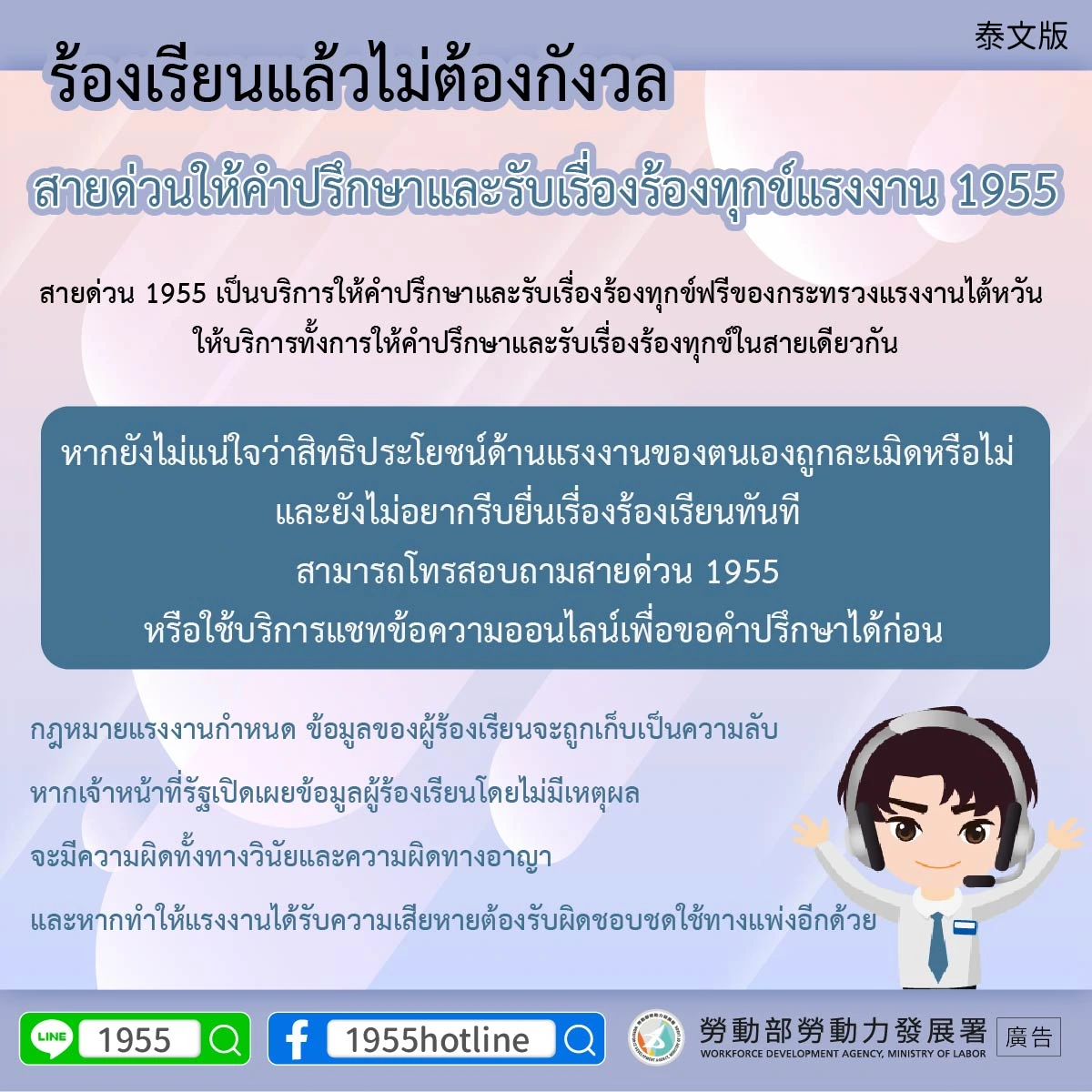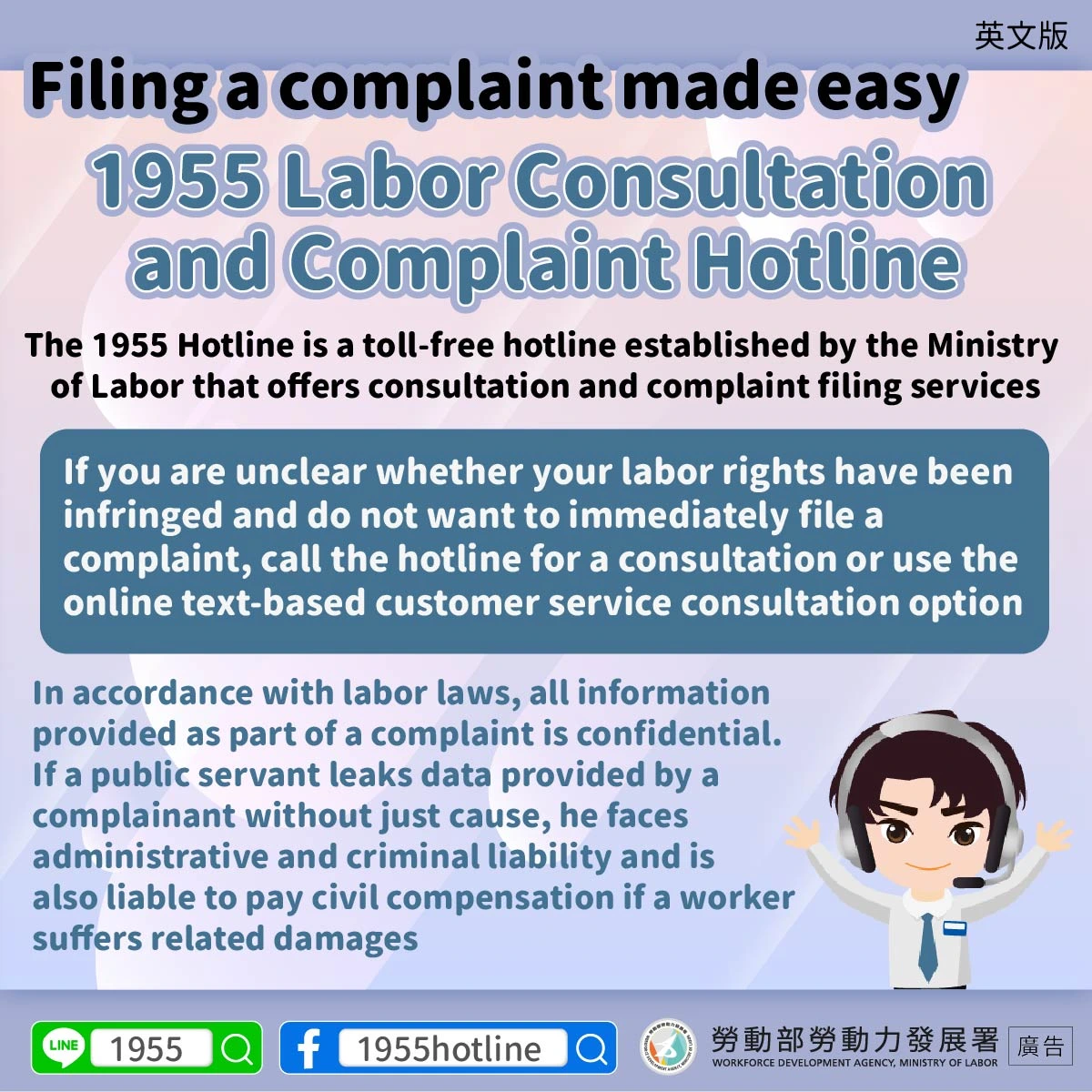 1141222 申訴不擔心-1955勞工諮詢申訴專線
