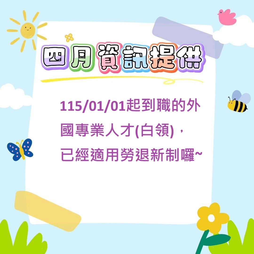 115/01/01起到職的外國專業人才(白領),已經適用勞退新制囉